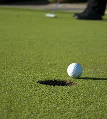 - 约翰尽量把身体扭向洞口方向以期高尔夫球能落进洞内.