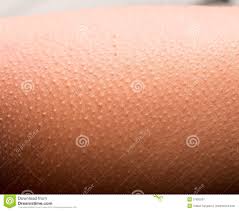 horripilation 因受惊和发冷等毛发竖立,起鸡皮疙瘩