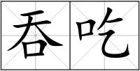 吞 : 吞tūn不嚼或不细嚼而咽入:吞吐。吞咽。吞噬。狼吞虎咽。气吞山河。忍气吞声。兼并,侵占:吞没?