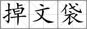 掉文袋 [diào wén dài]同“掉书袋 ”。清 王韬 《淞滨琐话·画船纪艳》:“语甫罢,而 绣云 自舱内出,转询可作诗词否,绣云 曰:‘儿是俗人,不解掉文袋。’”鲁迅 《华盖集·我的“籍”和“系”》:“譬如,假使要掉文袋,可以说说‘桃红柳绿’,这些事是大家早已公认的,谁也不会说你错。”