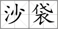 1.辽金时的一种刑具。用牛皮缝成长六寸,阔二寸,略似鞋底的袋,内装沙子,再连以尺把长的木柄,用以击打罪犯。 2.装着沙的袋子。大小不一,用于儿童游戏﹑打仗作掩护﹑防洪﹑防火﹑体育锻炼等。 3.方言。指为调节电灯灯头悬挂高低而装置的瓷瓶。因内装沙子,故称。