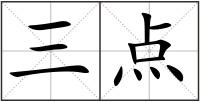 1.旧时以更计时,一夜五更,每更分三点。 2.指古印度婆罗谜字体表示i-(kara)的字母。原写作不纵不横的三个点,后在吐火罗语中作三个"c"字形,故称"三点"。佛教借此三点不纵不横的三角关系,以喻教义。一般指《涅盘经》所说的"三德":法身德﹑般若德和解脱德。天台宗亦因以指空﹑假﹑中。