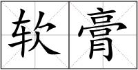阿芙蓉膏 安车软轮 走软索 走软 嘴硬心软 嘴软 滋膏 软木砖 竹膏 脂膏不润 脂膏莫润 脂膏 猪膏 针膏 枣膏昏钝 雉膏 云膏 玉龙膏 玉软 玉软花柔 蚖膏 鱼膏 玉膏 榆膏 雨膏烟腻 余膏剩馥 油膏 银膏 眼软 药膏 洋膏 牙膏 熏膏 血膏 烟膏 玄明膏 选软 雪花膏 巽软 研膏 杏膏 心慈手软 心慈面软 销膏 小软儿 心活面软 鸦片膏 心软 香膏 鲜膏 腥膏 纤维柔软剂 纤软 豨膏 系统软件 细软 稀软 温软 丸药膏丹 橡皮膏 丸散膏丹 吴侬软语 纨袴膏粱 纨褲膏粱 乌膏 屯膏