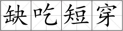 缺吃短穿 [quē chī duǎn chuān]指衣食困乏。同“缺吃少穿”。