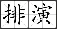 《儿女英雄传》第十六回:“但是这事不是三句五句话了事的,再也‘定法不是法’,我们今日须得先排演一番。” 洪深 《最近的个人的见解》:“当《撤退赵家庄》排演时,请了一个做号兵的军人来参加这出剧的吹号工作。”
