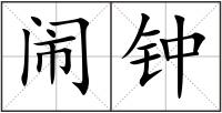 周立波 《铁水奔流》三:“镜架跟前放着一口永远不闹,短针老指着五点钟,就是工厂下班时刻的小闹钟。”《人民文学》1981年第8期:“我安安稳稳睡了一宿,被床头的闹钟惊醒。”