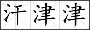 津津 : ①形容有滋味;有趣味:~有味ㄧ~乐道(很感兴趣地谈论)。 ②(汗、水)流出的样子:汗~ㄧ水~。