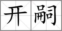 开 : 开(開)kāi启,张,把关闭的东西打开:开启。开化。开诚布公。分割:对开。三十二开本。通,?