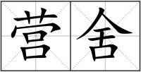 《东观汉记·曹褒传》:“在射声营舍,有停棺不葬者百餘所。”《宋书·后废帝纪》:“宵游忘反,宴寝营舍。”《宋史·贾昌朝传》:“ 太祖 朝,令诸军毋得食肉衣帛,营舍有粥酒肴,则逐去,士卒有服繒綵者笞责之。” 章裕昆 《文学社武昌首义纪实》:“纵火焚营舍,光焰烛天。”