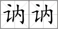 讷 : 讷(訥)nè语言迟钝:木讷。口讷。讷讷(形容说话迟钝)。笔画数:6;部首:讠;笔顺编号:4WWw.wentiyi.cOM