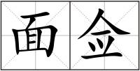 面 : 面(⑧面??麵)miàn头的前部,脸:脸面。颜面。面目。面面相觑。用脸对着,向着:面对。面壁(?