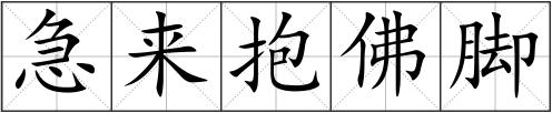 抱佛脚 : 比喻平时没联系,临时慌忙恳求,后比喻平时没准备,临时慌忙应付。