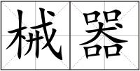 械 : 械xiè器物,家伙:器械。机械。武器:械斗。军械。缴械投降。木枷和镣铐之类的刑具:械系。笔 wWw.wENtIYI.com