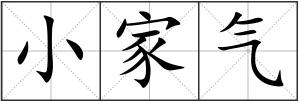 清 张岱 《陶庵梦忆·孔庙桧》:“ 孔 家人曰:‘天下只三家人家:我家与 江西 张 , 凤阳 朱 而已。 江西 张 ,道士气; 凤阳 朱 ,暴发人家,小家气。’”《三侠五义》第三十回:“ 展爷 见此光景,不得不舞,再要推託,便是小家气了。”