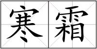 《三国志·魏志·管辂传》“惟以梳为枇耳” 裴松之 注引《辂别传》:“若以参星为虎,则谷风更为寒霜之风,寒霜之风非东风之名。” 唐太宗 《赋得临池竹》诗:“贞条障曲砌,翠叶贯寒霜。”《三侠五义》第三二回:“因 颜老爷 在日为人正直,作了一任县尹,两袖清风,一贫如洗,清如秋水,严似寒霜。”