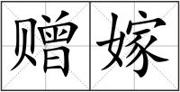 《禅真后史》第九回:“今日弟媳不惟人物艷丽,又且赠嫁千金。”《天雨花》第一回:“一个赠嫁丫环道:‘小姐恐怕天气炎热,带几件更换的纱衣在这包内。’” 胡朴安 《中华全国风俗志·蒙古·蒙古人之礼节》:“赠嫁之物极简单,无妆奁,无箱笼,无衾裯,衣服随身而已。”