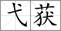 获 : 获(獲⑤穫)huò打猎得到的禽兽:猎获。得到,取得:获得。获奖。获悉。如获至宝。古代对奴婢?