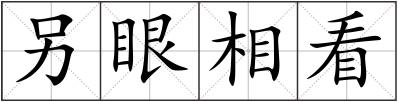 另眼相看 [lìng yǎn xiāng kàn]用另一种眼光看待。指看待某个人不同一般。也指不被重视的人得到重视。