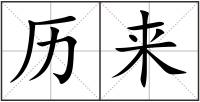 《英烈传》第六三回:“﹝ 明太祖 ﹞因令工人在大内图画的四壁,俱采《豳风·七月》之诗,及自己歷来战阵艰难之事,绘图以示后世。”《红楼梦》第一回:“我想歷来野史的朝代,无非假借‘ 汉 ’‘ 唐 ’的名色。” 鲁迅 《书信集·致母亲》:“其实以现在生活之艰难,家中历来之生活法,也还要算是上等。” 杨朔 《泰山极顶》:“ 泰山 极顶看日出历来被描绘成十分壮观的奇景。”