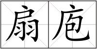 扇 : 扇shàn摇动生风取凉的用具:扇子。扇坠(扇柄下端的装饰物)。扇面儿。扇形。指板状或片状的屏: