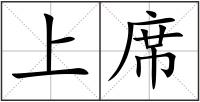 《三国志·魏志·吕布传》“ 邈 诣 袁术 请救未至,自为其兵所杀” 裴松之 注引《献帝春秋》:“公居轴处中,入则享于上席,出则为众目之所属。” 唐 姚崇 《春日洛阳城侍宴》诗:“ 尧 樽临上席, 舜 乐下前溪。” 沙汀 《在其香居茶馆里》:“你知道么,我坐上席会头昏的,--没有那个资格!”