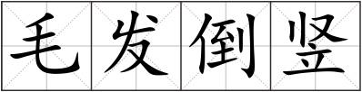 毛发倒竖 [máo fā dǎo shù]倒竖:尾端朝上直立。汗毛、头发都竖起来。①比喻怒不可遏。②形容很害怕,很紧张。亦作“毛发皆竖”、“毛发尽竖”、“毛发为竖”。