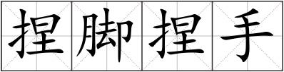 捏脚捏手 [niē jiǎo niē shǒu]放轻手脚走路,动作小心翼翼的样子。