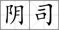 唐 吕岩 《七言》诗之二七:“仙府记名丹已熟,阴司除籍命应远。”《古今小说·闹阴司司马貌断狱》:“﹝ 司马貌 ﹞随叫直日鬼吏,照单开四宗文卷原被告姓名,一齐唤到,挨次听审。那时振动了地府,闹遍了阴司。”《红楼梦》第十五回:“你是素日知道我的,从来不信什么阴司地狱报应的。”