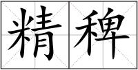 精 : 精jīng上好的白米:“食不厌精”。细密的,与“粗”相对:精密。精细。精确。精制。精读。精选。