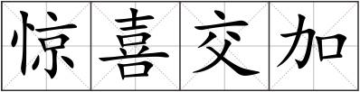 惊喜交加 [jīng xǐ jiāo jiā]两种事物同时出现或同时加在一个人身上,又惊又喜。
