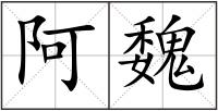 魏 : 魏wèi古代宫门上的楼台:魏阙(古代宫门上所建的巍然高出的台阙,因下边两旁有悬布法令的地方,所