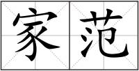 《旧唐书·崔珙传》:“礼乐二事,以为身文;仁义五常,自成家范。” 宋 陈亮 《祭王文卿父母文》:“昔我诸兄与其乡人诸友,乃从先公游,磨礱乎道义,而服膺其家范之懿,至今在耳歷歷也。” 元 揭傒斯 《逸士陈君墓志铭》:“其曾大父 亨 ,大父 世兴 ,父 应軾 ,皆事高尚,而家范齐肃如素官。” 清 蒲松龄 《聊斋志异·青凤》:“女乃喜曰:‘妾少孤,依叔成立。昔虽获罪,乃家范应尔。’”