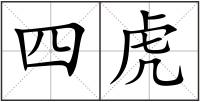 四虎 [sì hǔ]清 苏廷魁 、陈庆镛 、朱琦 、金应麟 为言官,敢犯颜直谏,时称“四虎”。