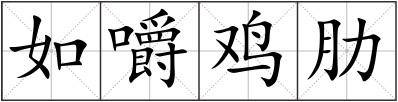 鸡肋:鸡的肋骨。比喻对事情的兴趣不大或少有实惠。