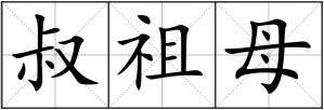叔祖母 [shū zǔ mǔ]父亲的叔母。