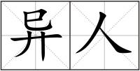 1.亦作"异人"。 2.他人;别人。 3.不寻常的人;有异才的人。 4.犹怪人,奇人。 5.神人;方士。