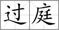 过庭 [guò tíng]《论语·季氏》:“鲤 趋而过庭,曰:‘学《诗》乎?’对曰:‘未也。’‘不学《诗》,无以言。’鲤 退而学《诗》。他日又独立,鲤 趋而过庭,曰:‘学《礼》乎?’对曰:‘未也。’‘不学《礼》,无以立。’鲤 退而学《礼》。”后因以“过庭”指承受父训或径指父训。