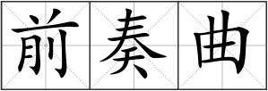 前奏曲 [qián zòu qǔ]大型乐曲、歌剧等开幕、开场前所奏的乐曲。又称序曲、序奏曲。亦用以比喻事物出现的先声。