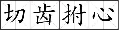 切齿拊心 [qiè chǐ fǔ xīn]咬牙捶胸。极端痛恨的样子。
