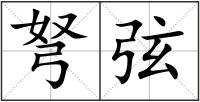 弦 : 弦xián系在弓背两端的、能发箭的绳状物:弓弦。弦韦(“弦”指弓弦,“韦”是兽皮,弦紧皮软,喻?