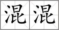 混 : 混hùn搀杂在一起:混杂。混和。混同。混淆。混为一谈。乱,胡乱:混乱。混世魔王。蒙,充:蒙混