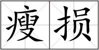 元 王实甫 《西厢记》第二本第一折:“懨懨瘦损,早是伤神,那值残春。” 清 吴伟业 《永和宫词》:“贵妃瘦损坐匡床,慵髻啼眉掩洞房。” 鲁迅 《彷徨·伤逝》:“她的勇气都失掉了,只为着 阿随 悲愤,为着做饭出神;然而奇怪的是倒也并不怎样瘦损。”