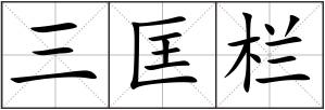 三匡栏 [sān kuāng lán]汉字偏旁名。形状为“匚”,如“匡”、“匠”、“匣”、“匪”等字的外围部分。
