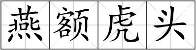 燕额虎头 [yàn é hǔ tóu]形容相貌威武。借指武将、勇士。同“燕颔虎头”。
