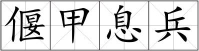 偃甲息兵 [yǎn jiǎ xī bīng]甲:古代作战时穿的护身服。兵:兵器。停止战争。