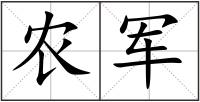 农 : 农(農)nóng种庄稼,属于种庄稼的:务农。农业。农田。农产。农垦。农家。农忙。农民。农妇。农