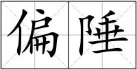 偏 : 偏piān歪,不在中间:偏斜。偏离。偏旁。偏僻。偏远。偏锋(a.书法上指用毛笔时笔锋斜出的笔势;b