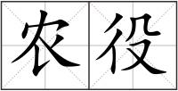 役 : 役yì服兵务,从军:从役。现役。战事:战役。服劳力之事:劳役。徭役。使唤:役使。奴役。被?