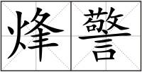 烽 : 烽fēng古代边防报警的烟火:烽火(a.古代边防报警的烟火;b.喻战争或战乱)。烽烟。烽燧。烽?