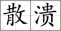 散 : 散sàn分开,由聚集而分离:分散。解散。涣散。散落。散失。散逸。分布,分给:散布。散发(f?)?